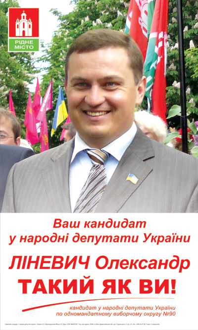 Передвиборна програма кандидата у народні депутати України Ліневича Олександра Станіславовича"Разом відродимо рідне місто - БІЛУ ЦЕРКВУ"Шановні земляки! Я народився і виріс у місті Біла Церква, тут пройшло дитинство, тут живе моя сім’я, батьки, родичі та друзі. У цьому місті я сформувався як особистість, як лідер, тому воно для мене найрідніше! Обіцяю Вам робити все, щоб воно стало процвітаючим! Все своє життя дотримуюсь правила, що краще пообіцяти менше, а зробити більше, ніж навпаки. Виходячи з внутрішніх переконань і власного набутого досвіду, представляю свою програму: - при виконанні своїх депутатських обов?язків буду керуватись Конституцією України, її законами і власною освітою;
